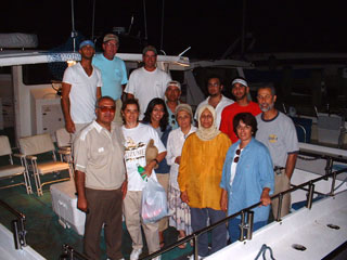 And here we have the Adel Faramawi (far right) crew of September 8, who caught a fine mess of bluefish until the sun hit the trees. |