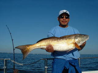 Here' Alex Martinez with a beautiful 36 inch red drum, caught September 02 on the Worm. |