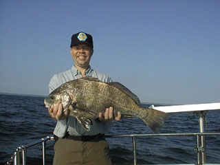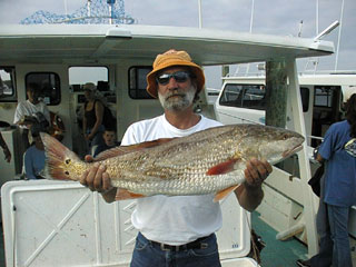 Here' Patrick Kincer with a fine 30 inch red drum he caught while fishing with Louie Hugg on the Worm September 2. What a trophy! |